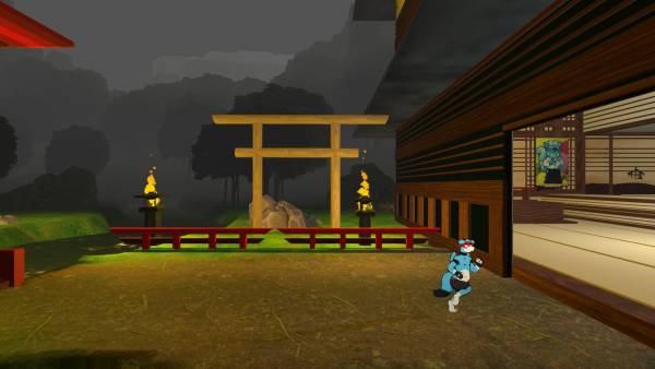 The dojo is a massive building constructed with Edo Era style architecture and interior design. This includes Shōji (moveable screens) and fusuma paper sliding doors, tatami mats, paper lanterns, and polished wood blocks. A Vermillion Torii greets the player at the entrance and similar materials are used to make the bridges and scaffolding of the structure.