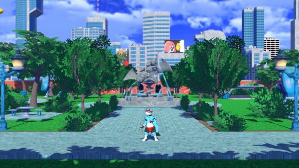 The Lood City Park is a major location where the player ends their adventure, they are initially greeted by Lin who warns them of a cop looking for Joe. After dismissing his warning, the player can encounter the boss of Act 1 Bates and engage with him in a fight, this fight takes place in front of the park's fountain and the player's screen is locked to this location, meaning they cannot exit the location until one of them is defeated.